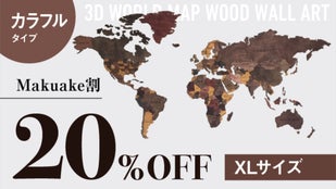 【Makuake割】リアルウッド3D世界地図 20%OFF カラフルXLサイズ