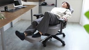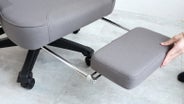 リクライニング、ロッキングだけではありません。座面下に格納されたフットレストで、疲れのたまった足をグーっと伸ばすことができます。
