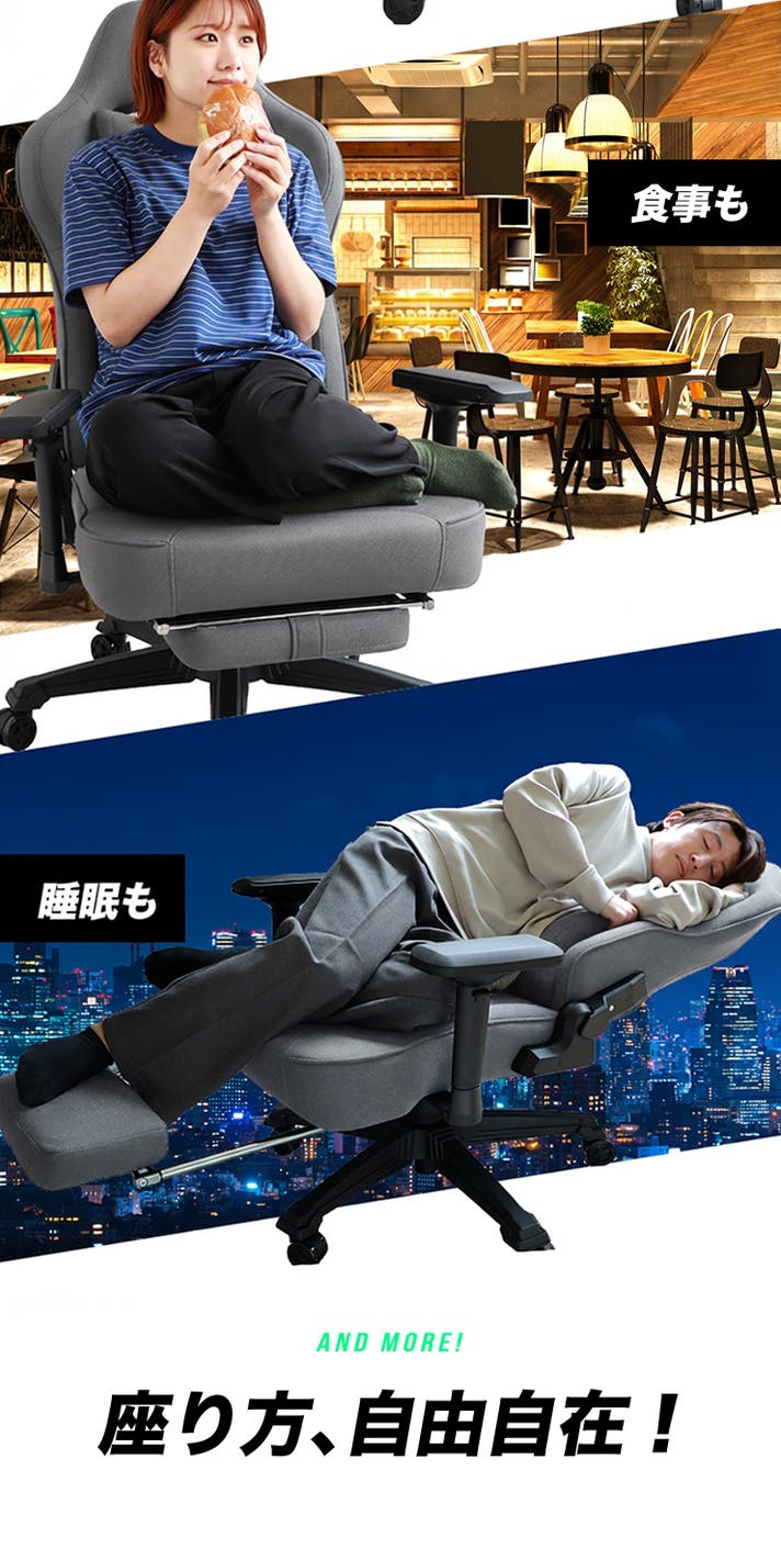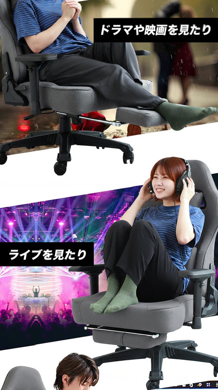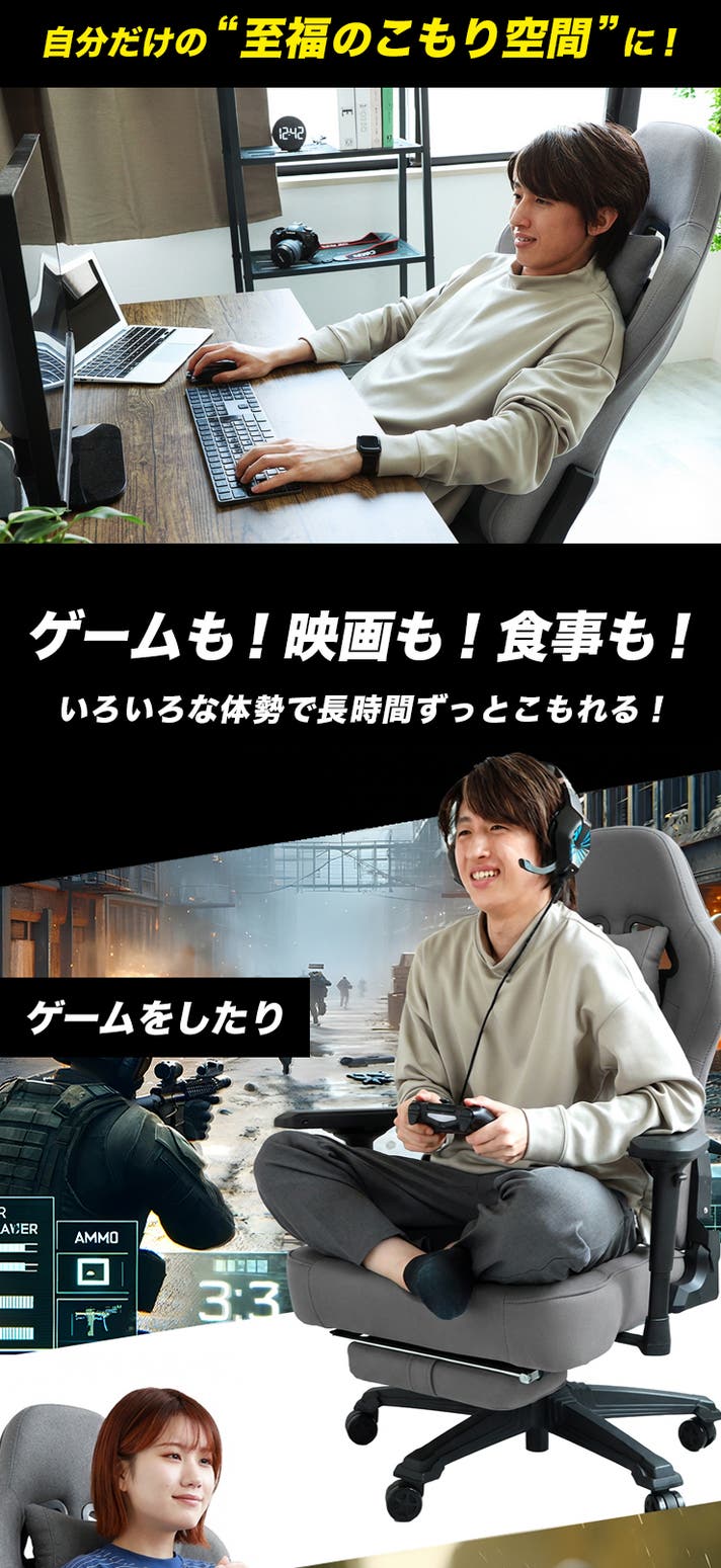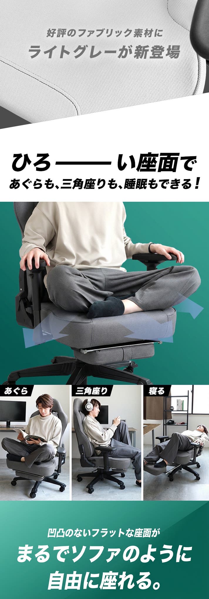 - あぐらをかけるフットレスト付きゲーミングチェアに「新色・ライトグレー」が登場!