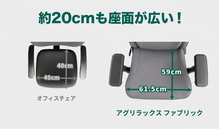 アグリラックス ファブリックの極広座面は、まるでソファーに座っているように広々。