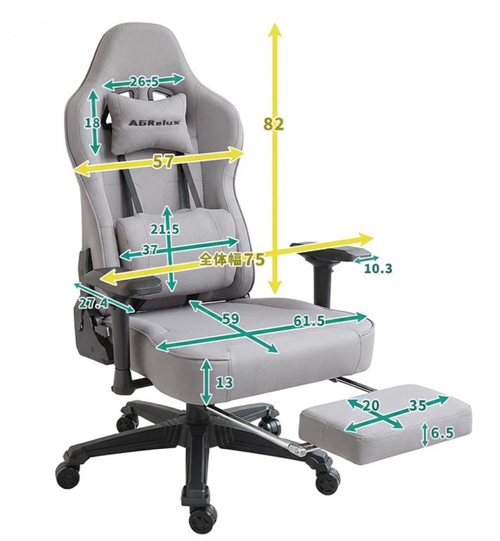 商品名:3R Gaming ゲーミングチェア AGRelux ファブリック グレー