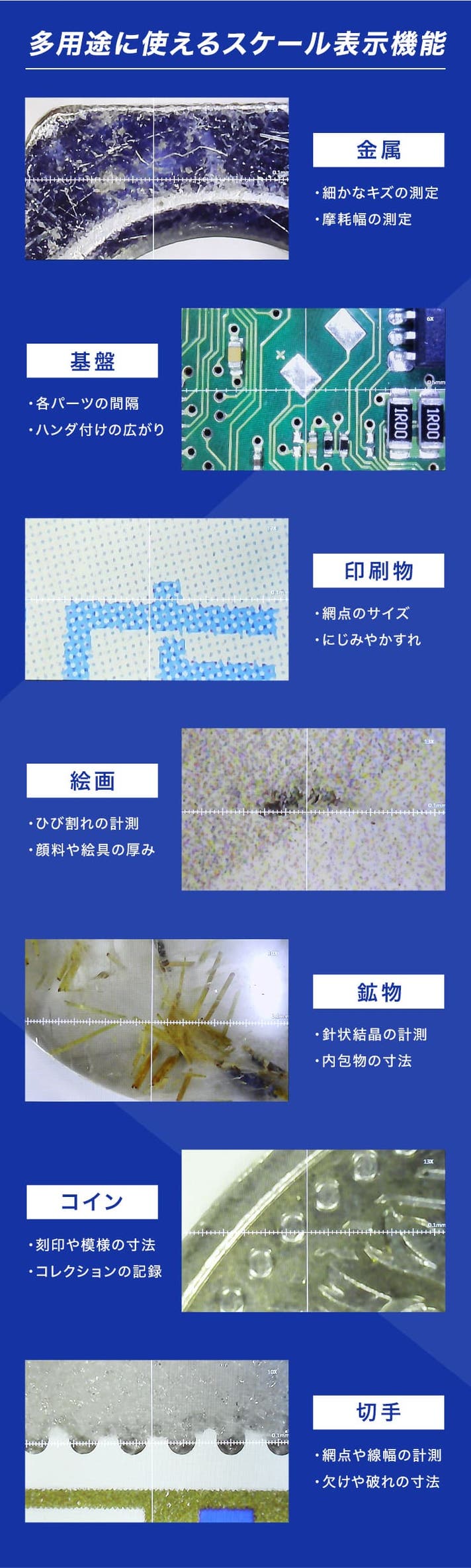 - 金属、基盤、鉱物、切手など、多用途に使えます。