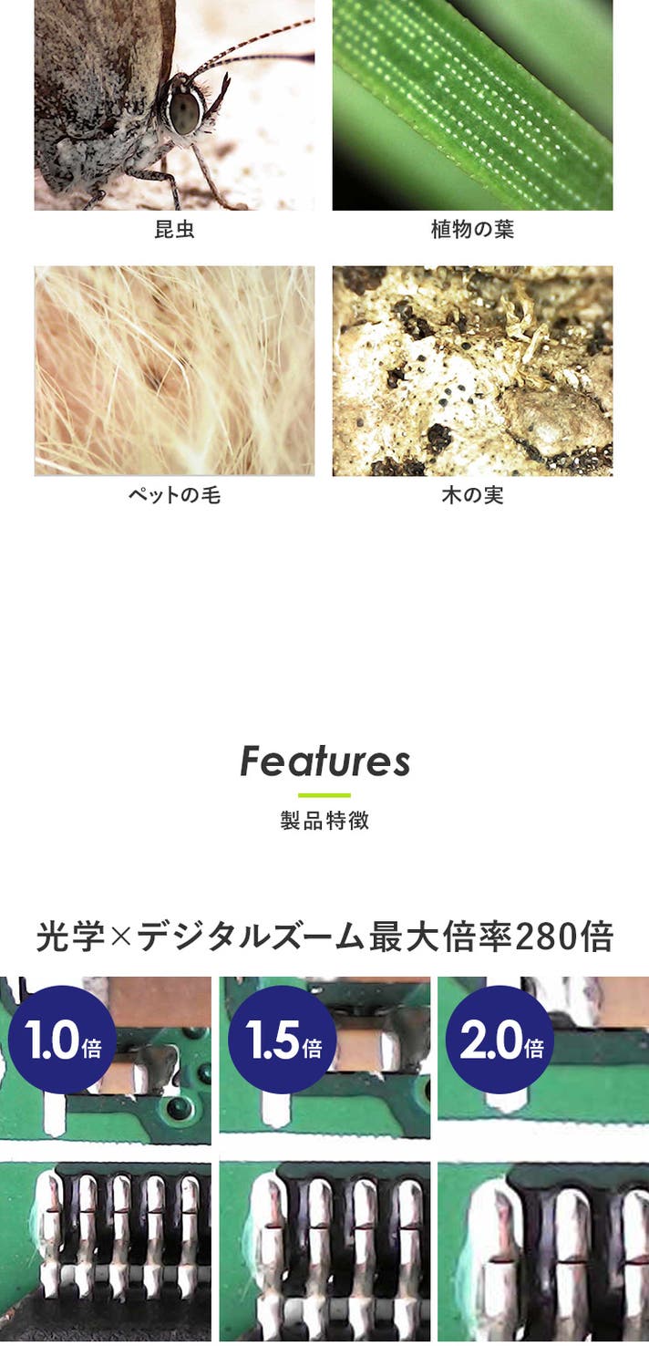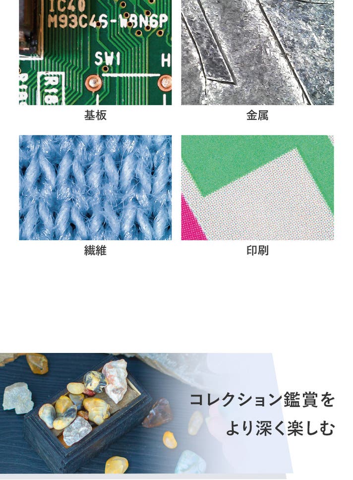 鉱物のインクルージョン、宝石ルースの鑑賞、陶磁器の真贋鑑定、エラーコイン、記念切手の細部まで鮮明に。