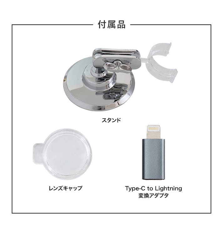 付属品:スタンド、レンズキャップ、Type-C to Lighting変換アダプタ
