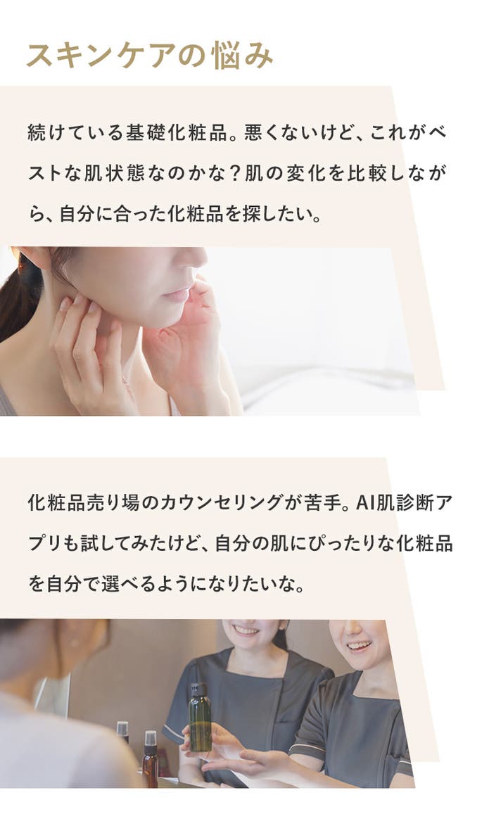 - 日々のセルフケアの成果を比較しながら確認できるので、毎日のケアが楽しく続けられます。