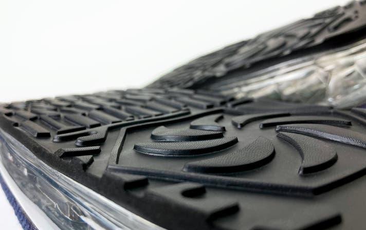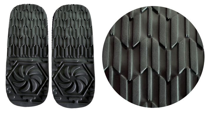 ゴムのような手触りで、水に強く、軽量かつ耐久性・耐衝撃性に優れているのが特徴。スポーツシューズの底材などとして幅広く使われる素材です。