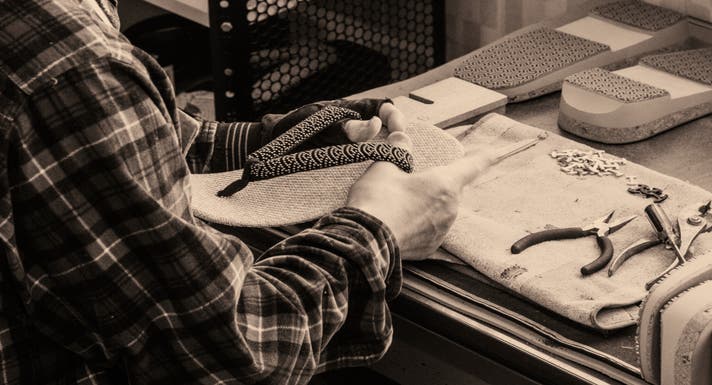 職人技術により、つま先の反り(トゥスプリング)を実現。