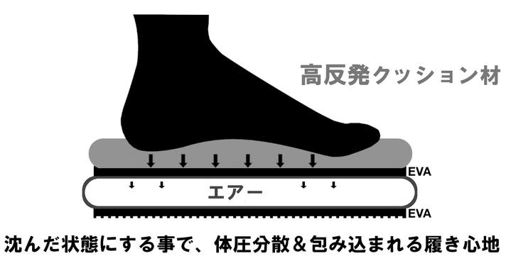 足が直接衝撃を受ける天板にも高反発クッションを仕込ませているので、程よい弾力で快適な履き心地です。