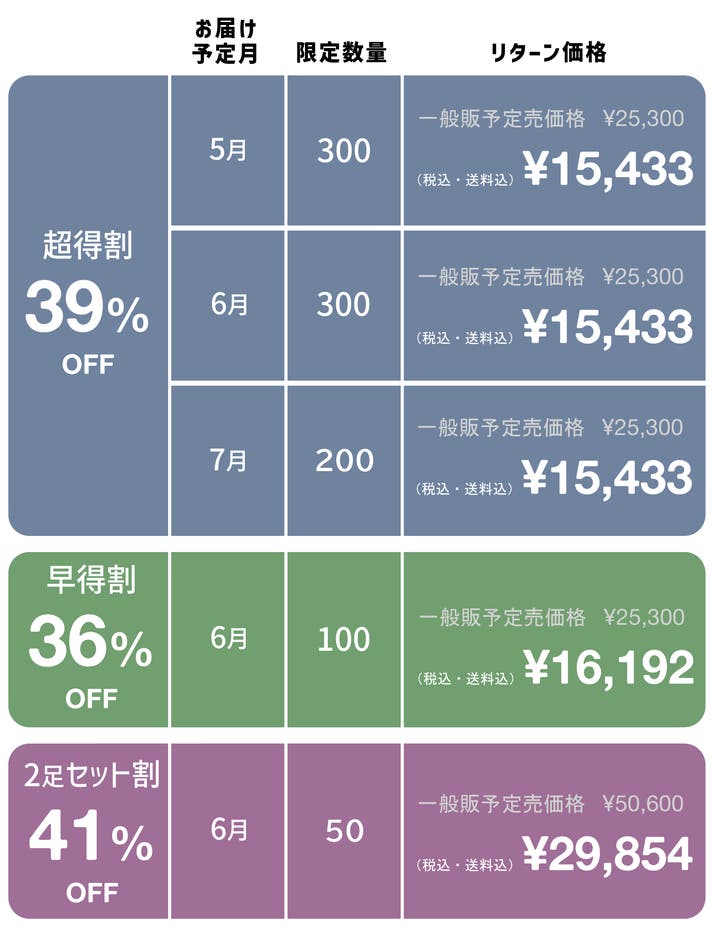 ※皆様の応援購入により量産効率が向上した場合、正規販売価格が予定価格より下がる可能性もございます。
