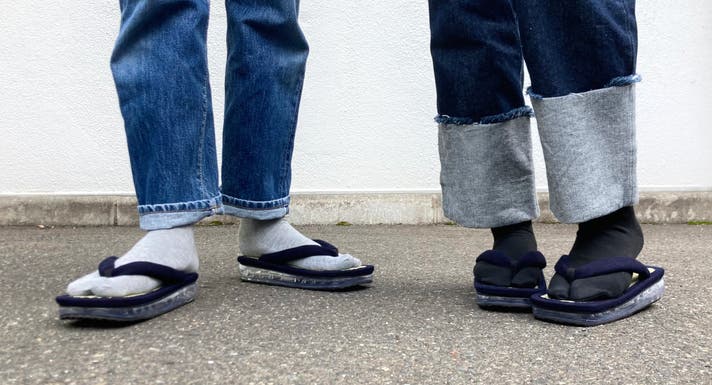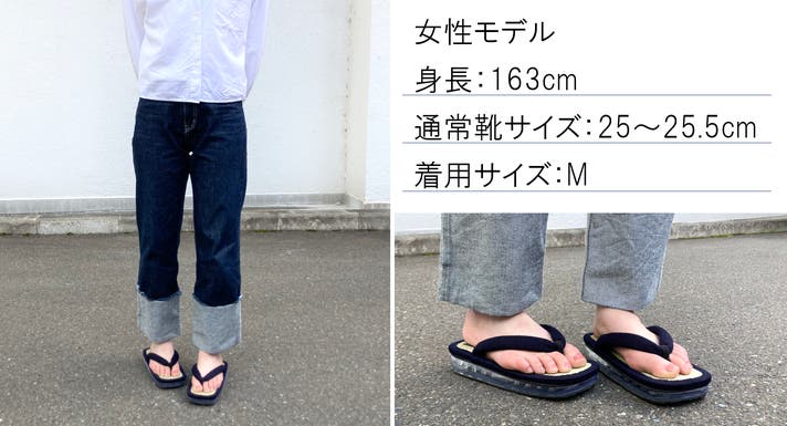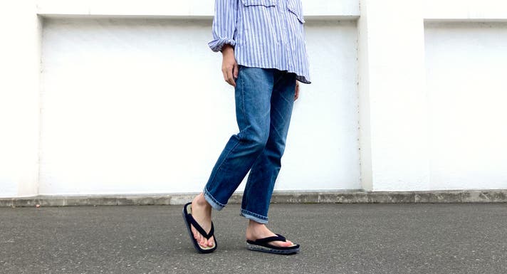 あくまで履き方やサイズ感はお好みでお選びいただきたいのですが、ちょっとした豆知識として、雪駄は小指とかかとを出して履くのが粋でカッコいい履き方と言われています。