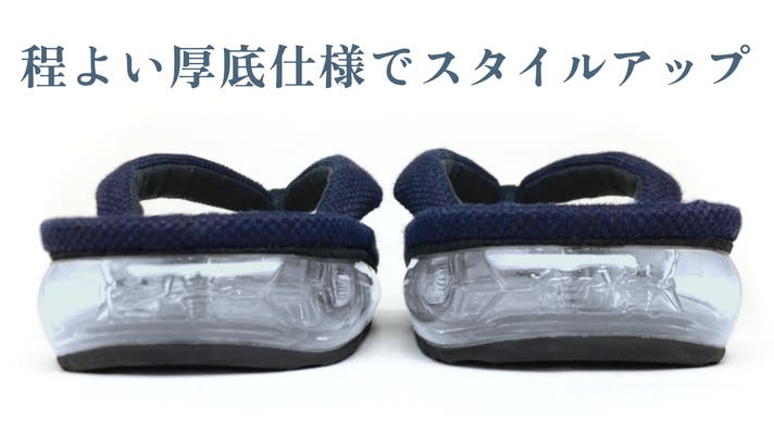 雪駄はソール部分が薄く平たいものが多いですが、ほどよい厚底(約4.5cm)デザインでスタイルアップ!
