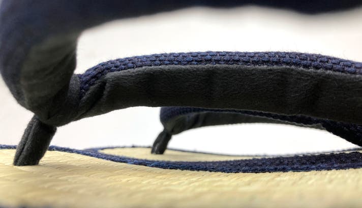鼻緒と天板の縁取りは、武州正藍染刺子生地を採用し、洗練され存在感あるデザインに仕上がっています。