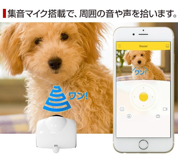 「Bayperバイパー」には、集音マイクも標準装備。アプリを立ち上げると映し出された映像の周囲の音や声を自動で拾いiPhone・スマホで聞くことができます。