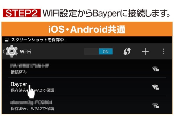 次に、スマホ・タブレットのWiFi設定からBayperに接続します。接続一覧からBayperをタップして下さい。