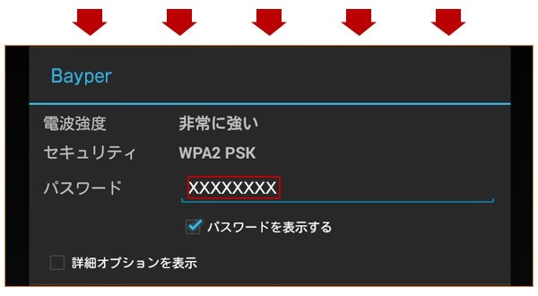 タップしたら、取扱説明書記載(製品記載)のパスワードを入力して下さい。これで、Bayperへの接続が完了です。