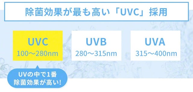 波長が短い紫外線で細菌を除菌できるため、「UVC」は最も除菌効果が高いといわれています。