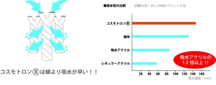 吸水速乾性のあるコスモトロン糸を使用