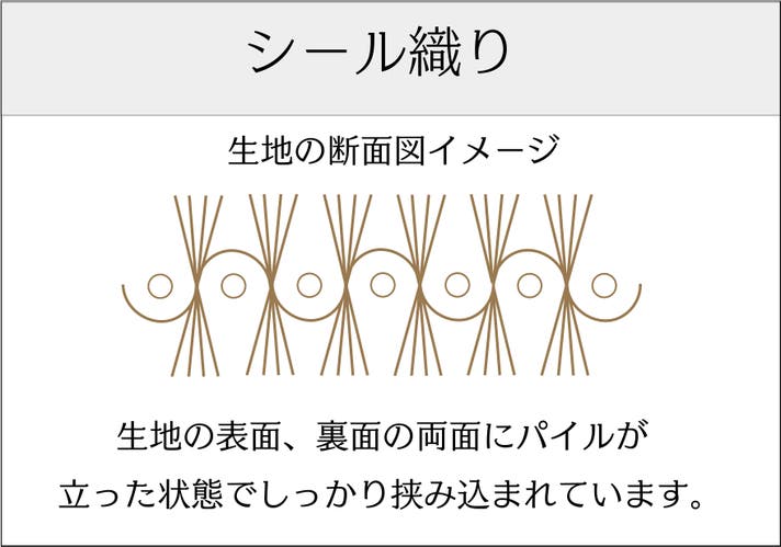 シール織りの由来として、肌触りがアザラシの毛皮のように光沢があり、手触りが良いことから名づけられました。