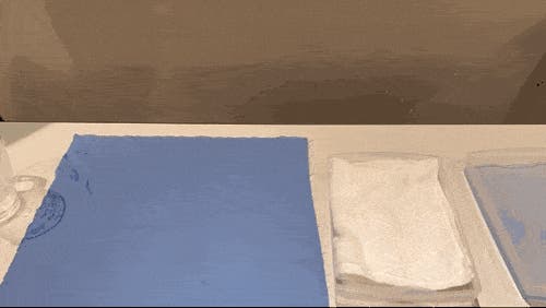 100mlの水をかけた生地をはたいた時の水離れの違いを実験しました。