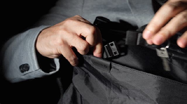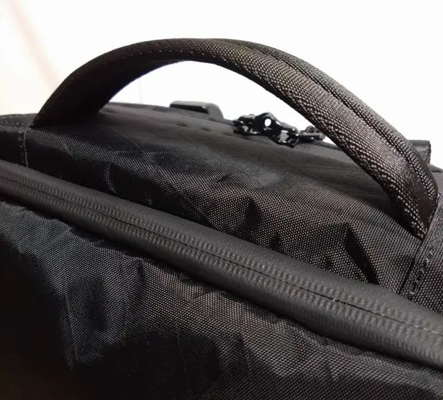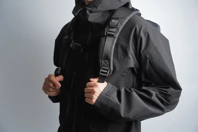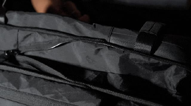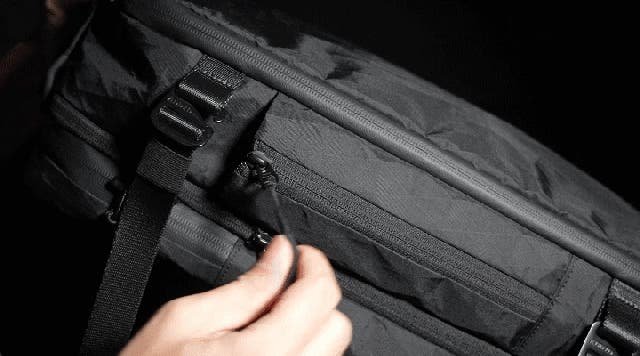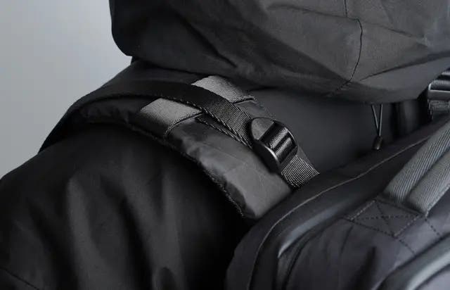 バックパックの表地素材にDemension-Polyant社による軽量、高耐久、防水性を備えたグレードであるX-PacブラックVX42を使用しています。(X-Pacはもともとヨットの帆に使用されている特殊生地であり、高次元の防水性能を実現させています。)