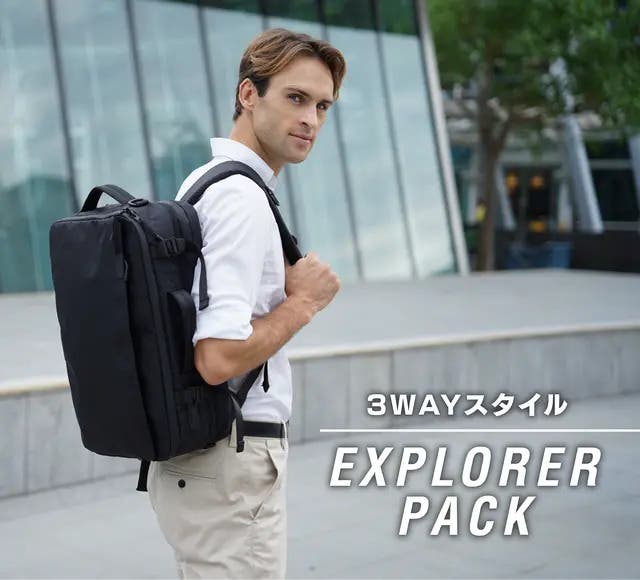 【EXPLORER PACK】は洗練されたデザインと機能性を兼ね備えた3WAYスタイルのビジネスリュックです。