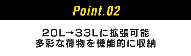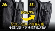荷物が増えても容量を20L→33Lに拡張が可能。