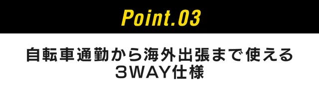 自転車通勤から海外出張まで幅広いシーンであなたを強力にサポートする、ビジネスマンのためのマルチバッグです。