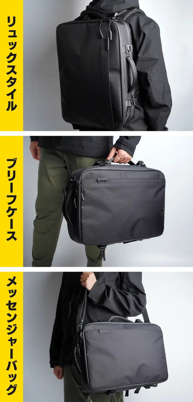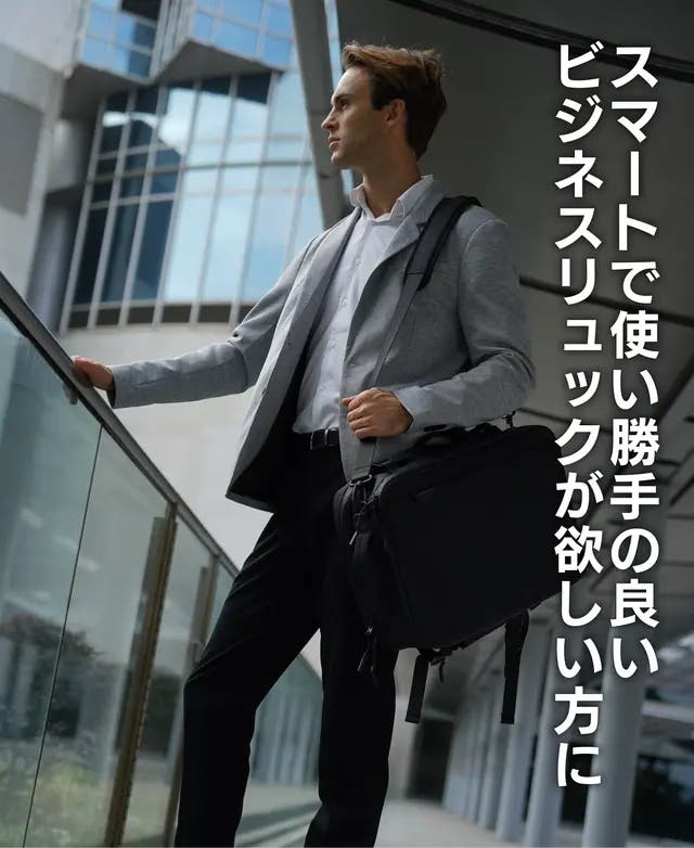 - クールで機能的なブリーフケースとメッセンジャーバッグとして使える3WAYのビジネスリュック。