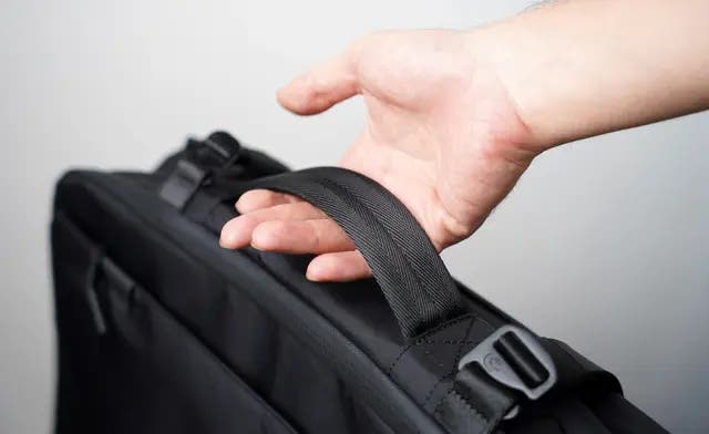 ブリーフケースとして使う場合は、トップハンドルとサイドハンドルの両方が付いているので、縦横自在に使い分けられます。
