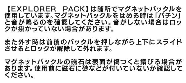 さらに腰への負担を軽減するため、オプションで【EXPLORER PACK】専用の“マグネット ウエスト ストラップ プロ”もご用意しました。