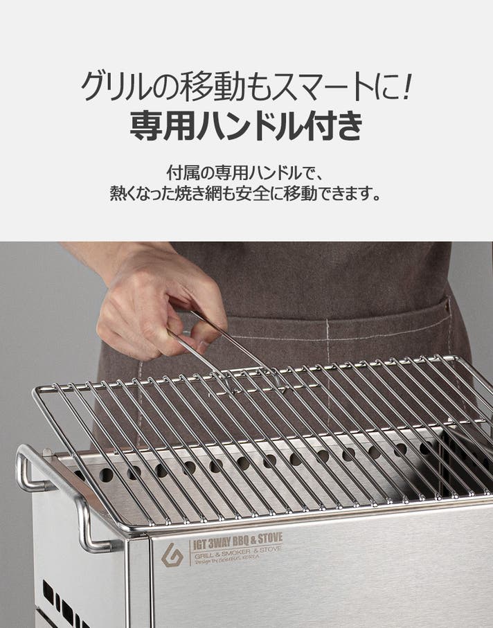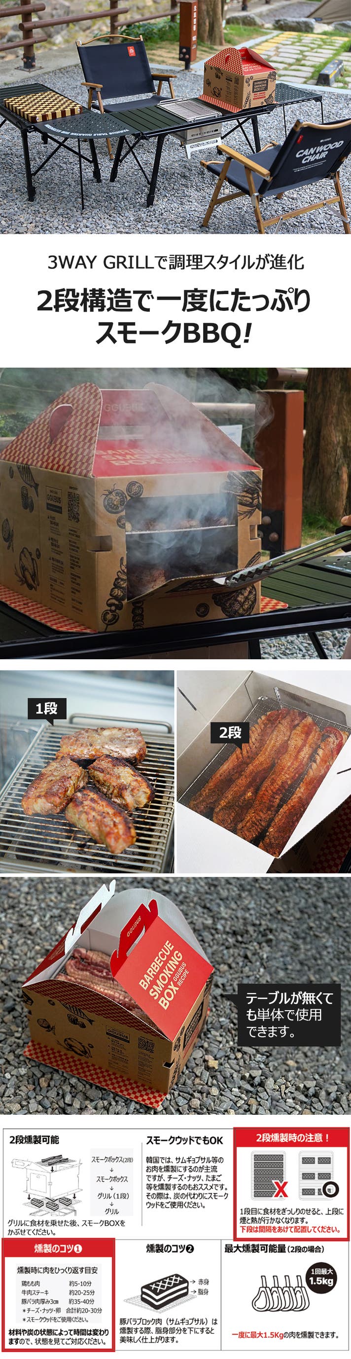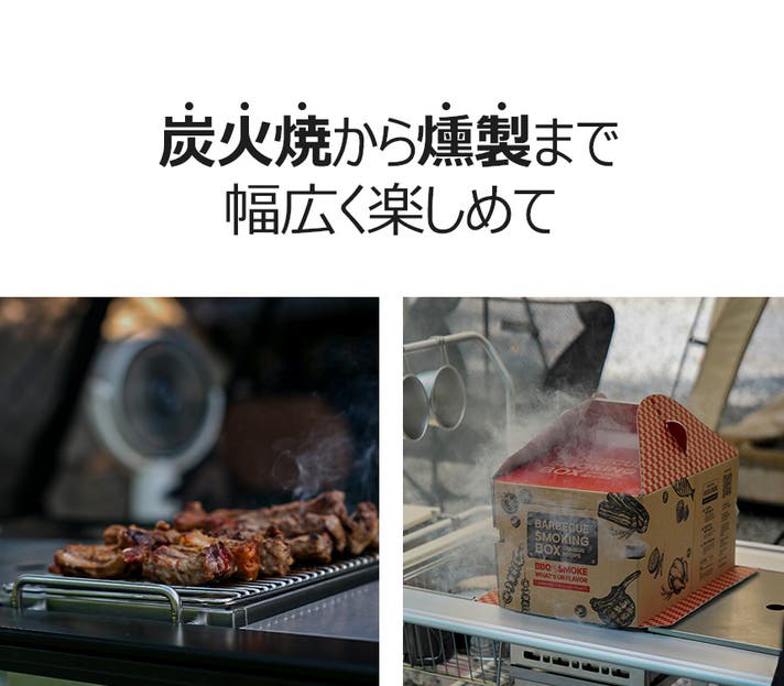 - 卓上でも単体でも楽しめるスモークBOX付きで、手軽にスモークBBQに挑戦!