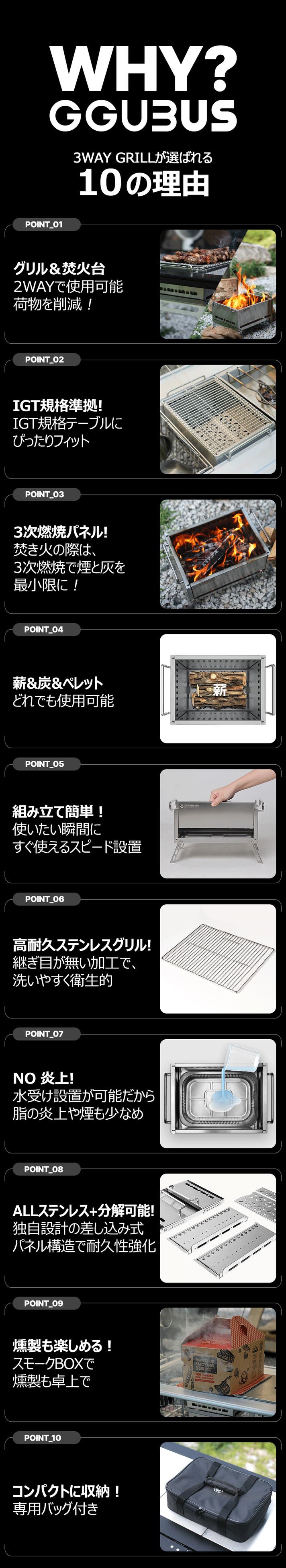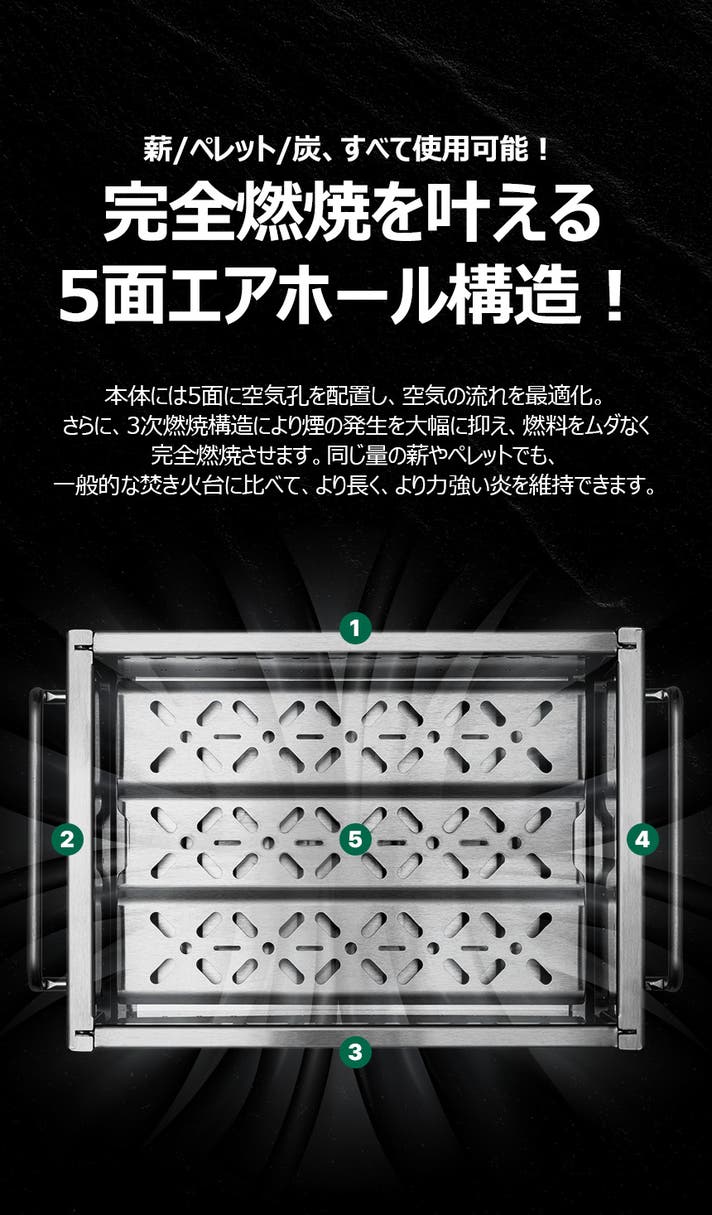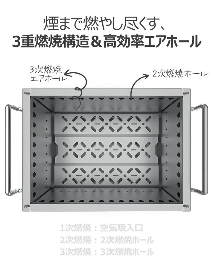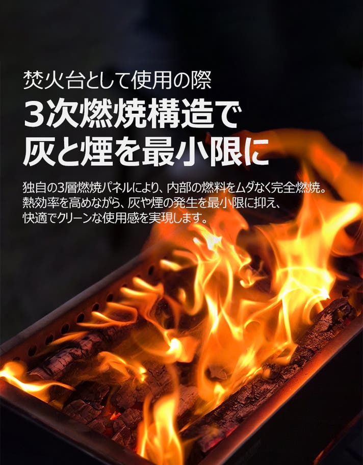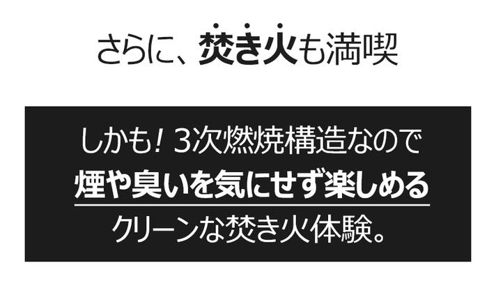 - 3次燃焼システムで煙と灰を最小限に抑制。ALLステンレス製で耐久性も抜群!