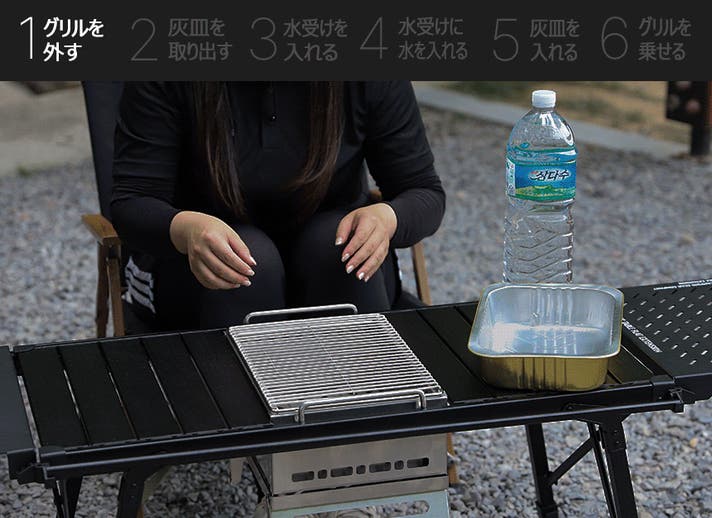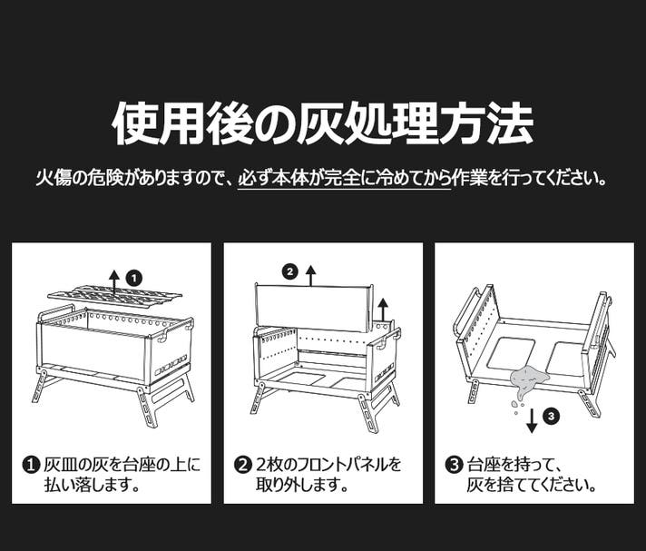 A:本体は完全に熱が冷めきってから灰を取り除き、キッチンタオルやウェットティッシュ等で汚れを拭き取って保管してください。グリルは食器用洗剤で洗っていただいて、錆びの原因になりますので水気を完全に拭き取ってから乾燥した場所に保管してください。