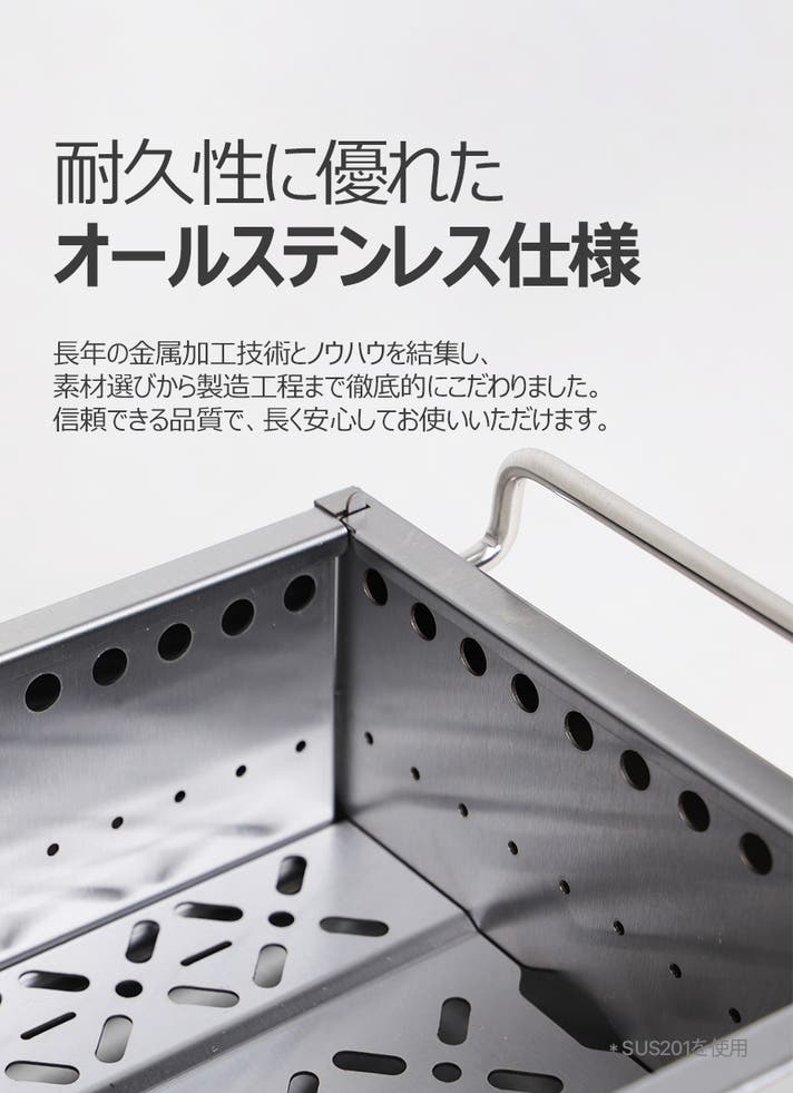 スモークBOXに付属しているステンレスグリルは、使用後は食器用洗剤で洗っていただいて、複数回ご使用いただけます。