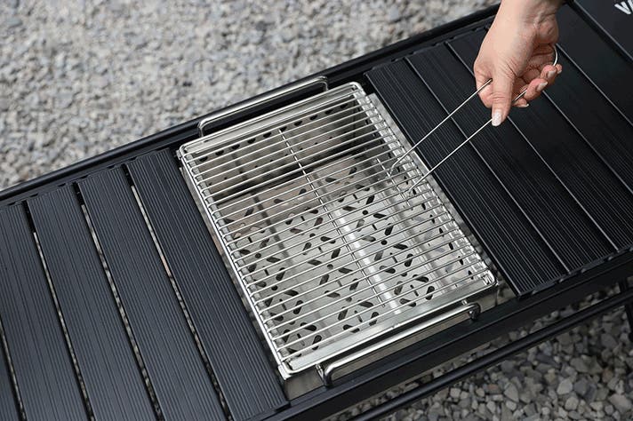 地面で使用される場合は、3WAY GRILLとの併用はできませんので、スモークBOX単体でご使用ください。その際は、1段のスモークが可能となります。