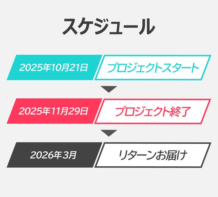このプロジェクトはAll in型です。目標金額の達成に関わらず、プロジェクト終了日の2025年11月29日までに支払いを完了した時点で購入が成立します。