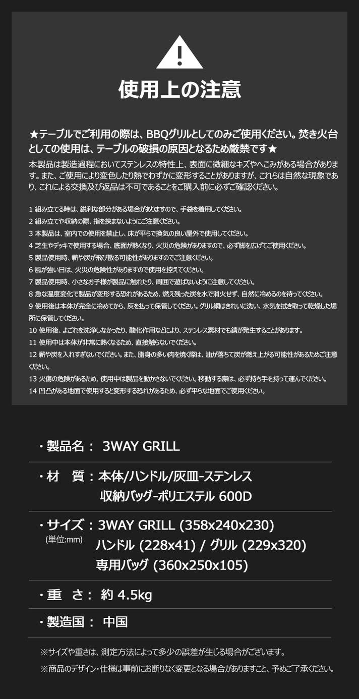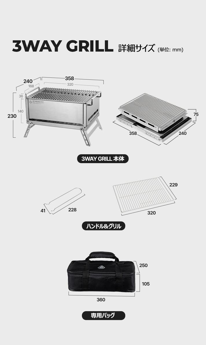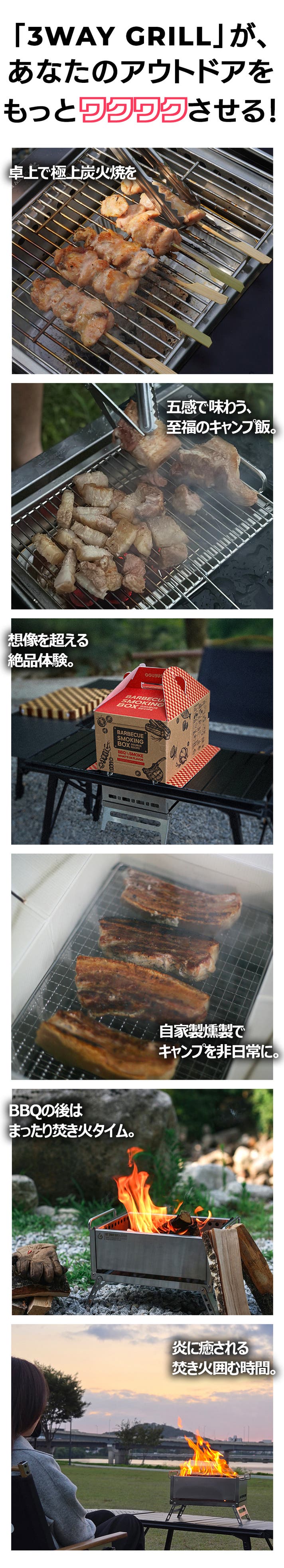 「3WAY GRILL」が、より身軽に、より快適に、皆様のアウトドアライフを豊かにするお手伝いができれば幸いです。