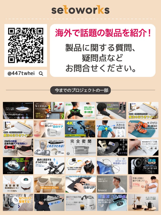 ※使用感などに関しては、感じ方に個人差が予想される商品でございます。そのため、使用感などに関する返品・返金はお受けいたしかねます。 ※初期不良以外に関する返品・返金はお受けいたしかねます。 ※開発中の製品のため、デザイン・カラー・素材などの仕様が一部変更になる可能性がございます。 ※モニター環境によって、画像の色が実物と異なって見えることがございます。 ※応援購入の数が想定を上回った場合、製造工程上の都合などにより出荷時期が遅れる場合がございます。 ※想定を上回る皆様から応援購入をいただき、量産体制をさらに充実させることができた場合、一般販売価格が予定価格を下回る可能性がございます。 ※リターンの配送が完了するまでセトワークスは47B.Agの日本における独占販売権を有する正規代理店です。並行輸入品が発生する可能性がございますが、並行輸入品には正規代理店による製品サポートを受けることができません。 また、正規代理店を通じて購入することで、日本国内での流通に必要な各種認証の取得やの関税の適切な処理が担保されます。 ※一部国内に類似商品が出回っている可能性がございます。弊社では他社の類似品に関してもお問い合わせには対応できませんのでご了承ください。 ※本文中に記載させていただいたスケジュールはあくまでプロジェクト公開時点の予定です。応援購入の性質上、配送遅延の恐れがございます。 ※原則として配送遅延に伴る応援購入のキャンセルはできませんが、リターン配送予定月から6か月を超えた場合には希望者に限りキャンセルにて対応させていただきます。