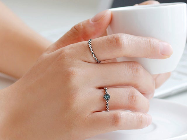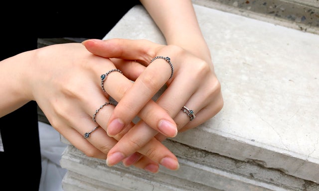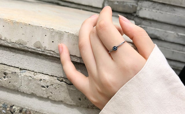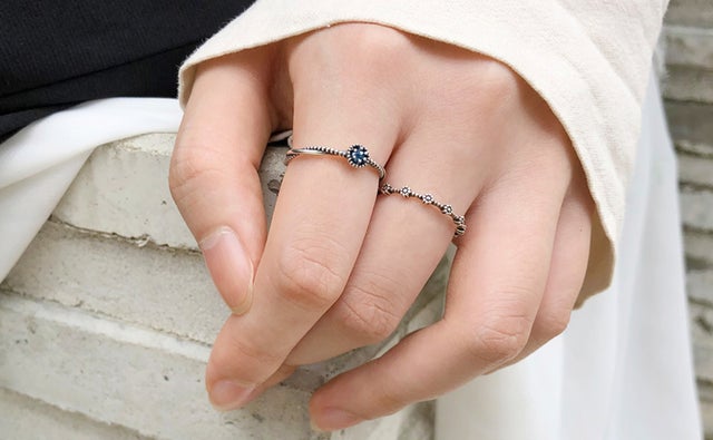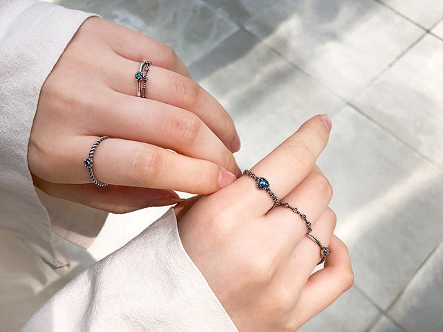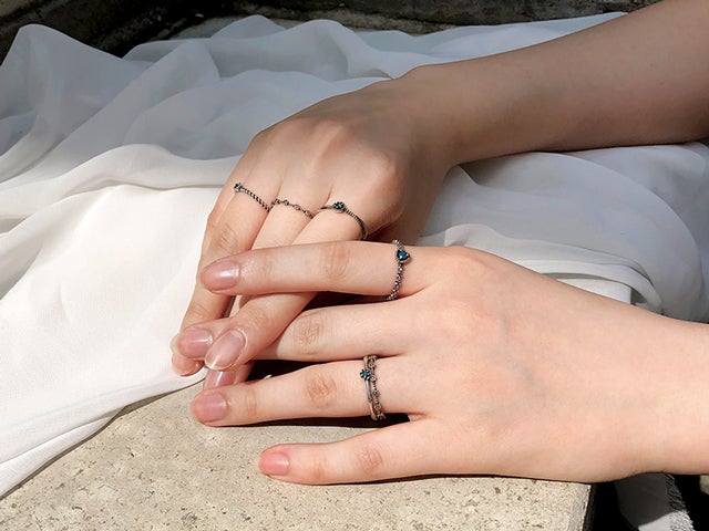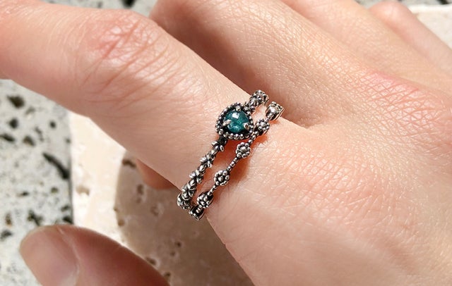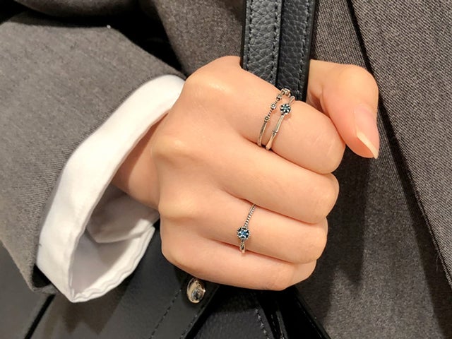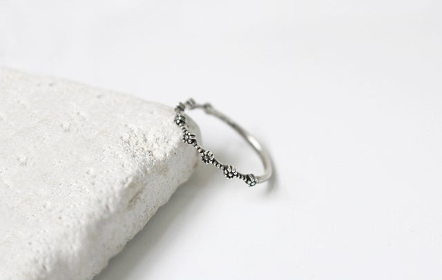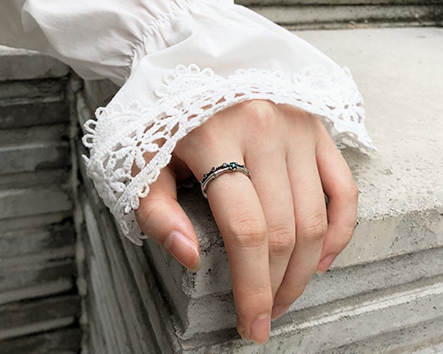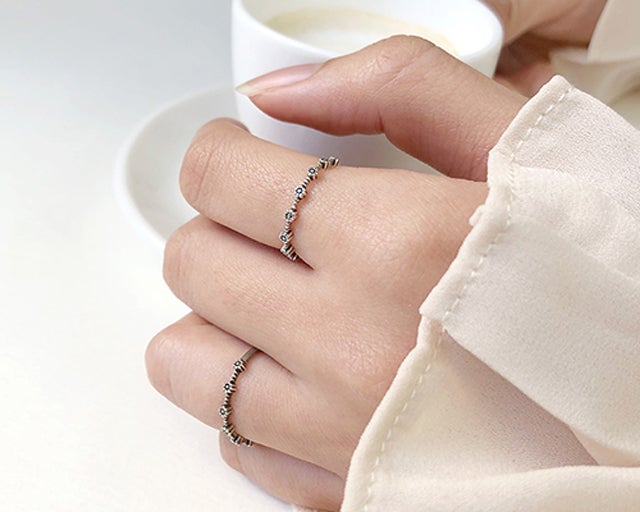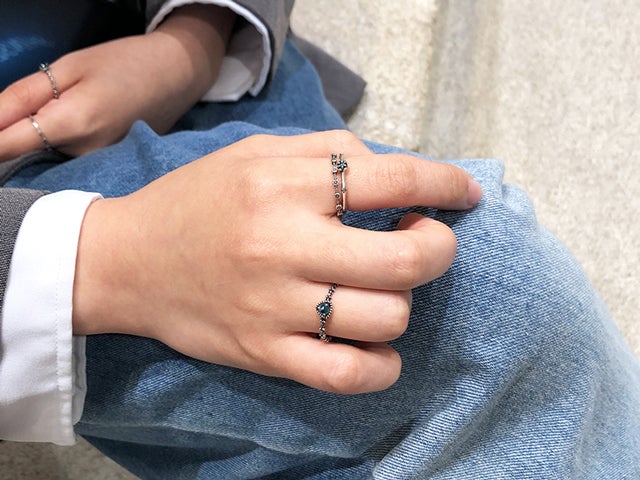 全体的にアンティークで繊細なデザインで小さなつぼみのディテールが魅力的です。他の指輪とレイヤードしやすいので47ベージュでの販売数1位で、どんな指輪と着用してもよく合い活用度の高い指輪です。