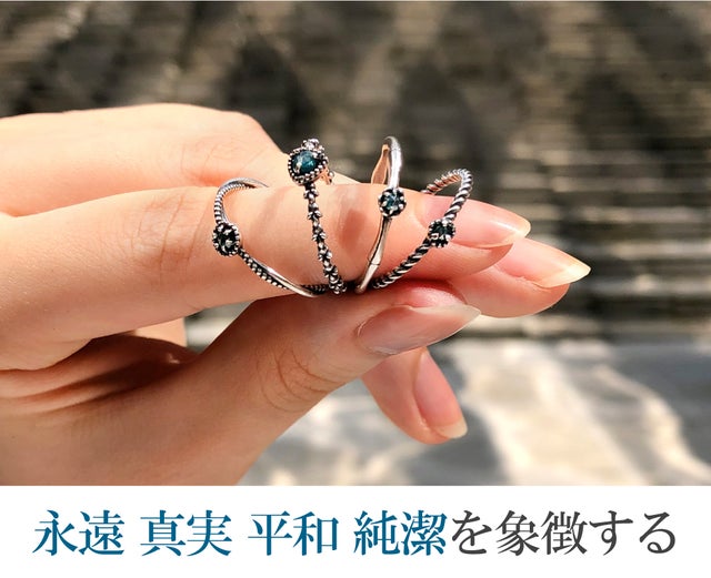 その奥深いカラーと内包物がよく調和し、アンティークシルバーとよく合う清涼感と高級感が感じられるカラーです。