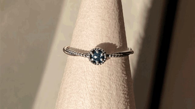 ブルーラフダイヤモンドはダイヤモンド表面に熱を加えてカラーを鮮明に処理した天然ダイヤモンドで、色は青緑色から濃い青色、ネイビーカラーです。