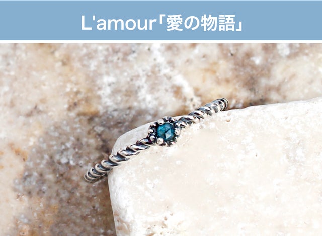 ラムールは約2.0mmのラフダイヤモンドがセットされたリングで、小さなハートの隙間を中心にアンティークなねじれが魅力的なリングです。