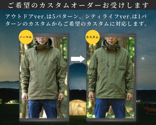 現時点で、ユースフルパーカーのアウトドアver.とシティライフver.のサンプル作製を終え、応援購入いただいた皆様へのリターン品の生産に向けての準備も整っております。 大量生産ではなく、1着1着に寄り添った痒い所に手が届く受注少量生産ではありますが、応援購入いただいた皆様の日常でも非日常でもお役に立てるよう、愛知県愛西市の自社工場にて一点一点丁寧に縫製させていただきます。 お手元へのお届けスケジュールは、遅くても2023年3月下旬までにお届けできるよう、プロジェクト終了後応援購入いただいたサポーター様順にご準備させていただきますが、お届けが遅れる場合がございますので、ご了承お願いいたします。 また、下記につきましてもご確認とご理解いただきますようお願いいたします。 ※デザイン・仕様は、変更になる可能性もございます。予めご了承ください。 ※製品の性質上、初期不良以外の返品・交換はいたしかねます。 ※使用感に関する、返品・交換はいたしかねます。 ※原則として、配送遅延に伴う応援購入のキャンセルはできませんが、リターン配送予定月から1ヶ月を超えた場合には、希望者に限りキャンセルにて対応させていただきます。 ※本文中に記載させていただいたスケジュールは、あくまでプロジェクト公開時点の予定です。応援購入の性質上、配送遅延のおそれがございます。 今後のスケジュールやデザイン・仕様等について変更がある場合は、その都度活動レポートでお知らせさせていただきます。