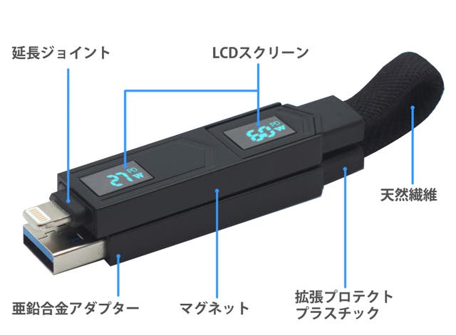 ケーブルの端子にLCDスクリーンが付いているので、充電のスビートが一目瞭然です。スビートの変化も分かることにテクノロジー感が満載です。