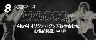 応援コース (4v4グッズ詰め合わせ+お名前掲載「大」枠)