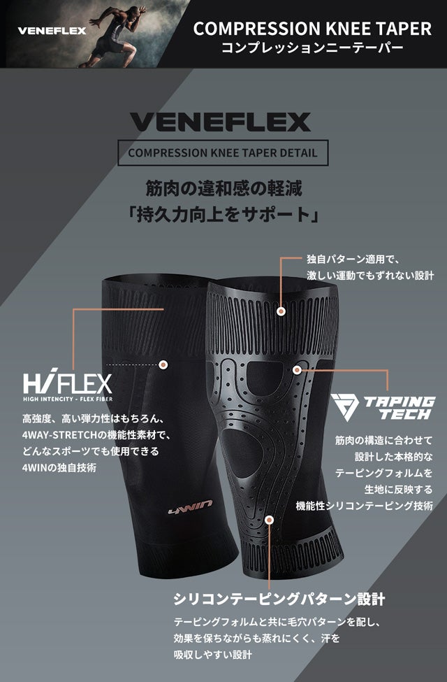 4WINは、テーピングの専門知識が無くても着るだけでしっかり肌に密着し、着用部位や体型に合わせて筋肉や関節を固定、保護して、コンプレッション効果で無駄な筋肉のブレを軽減、ダメージの緩和にも繋がる上に、着用することでパフォーマンスや持久力の向上をサポートします。