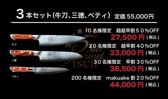 【20%OFF】 牛刀、三徳、ペティ3本セット 200名様限定 makuake割