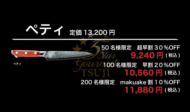 その第2弾として、料理で一番大事な包丁「5 Star Gourmet TSUJI 包丁S63」として販売をすることになりました。