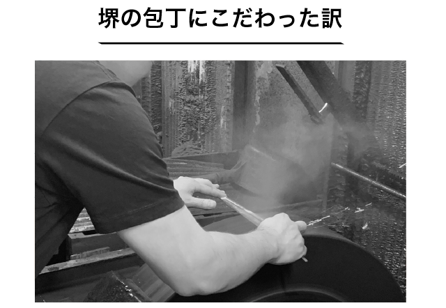 日本には、他にも岐阜の関や、新潟の燕など包丁で有名な街がありますが、その中では堺は、分業制と手作りという特徴があります。