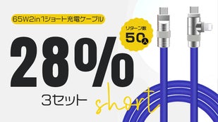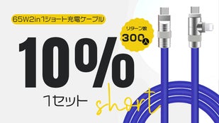 - 一本でType-C&Lightningに対応、最大出力65W、高速充電。